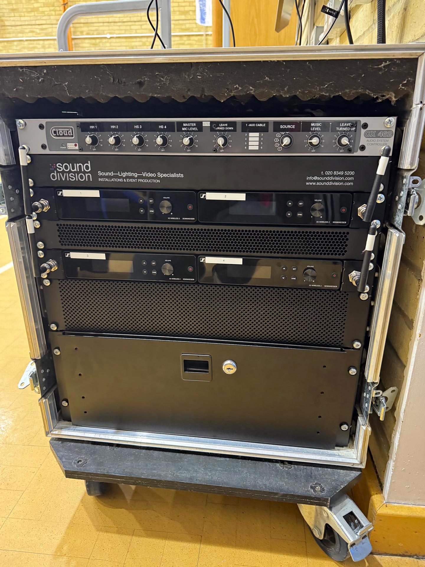 Sound Division stripped the existing system back completely, removing legacy cabling throughout the hall and rebuilding the sound cabinet.