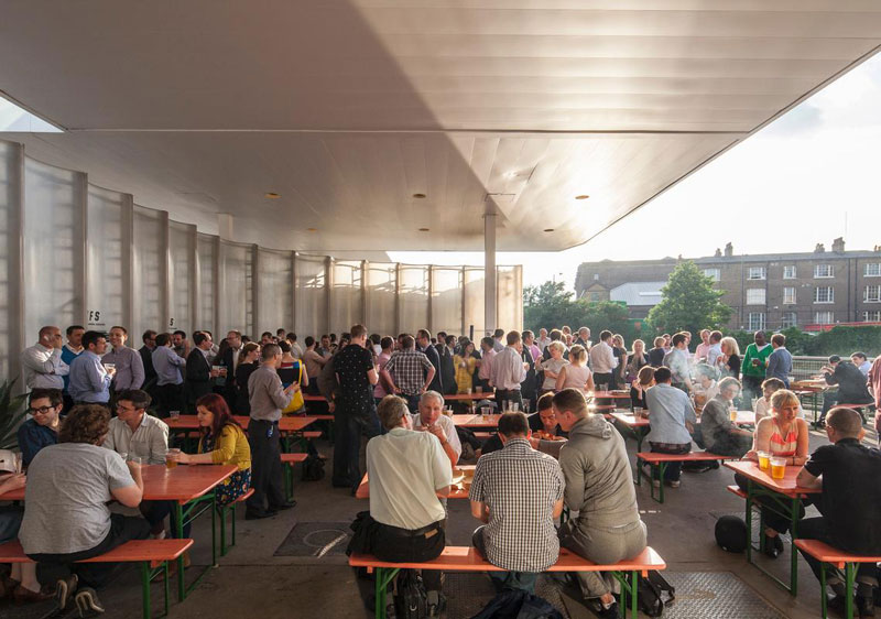 The canopy of the old station continues to shelter the forecourt while uber-fashionable pop-up restaurant Shrimpy’s is contained within the station’s old kiosk.